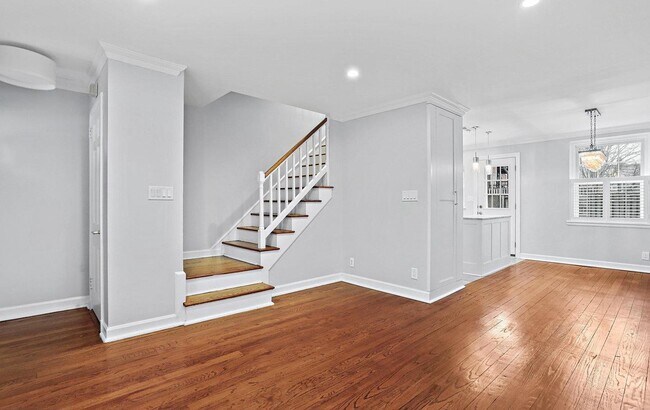 The townhome is located in the highly sought after Fairlington neighborhood and offers plenty of amenities, including a fitness center, swimming pool, and ample street parking for residents and visitors.