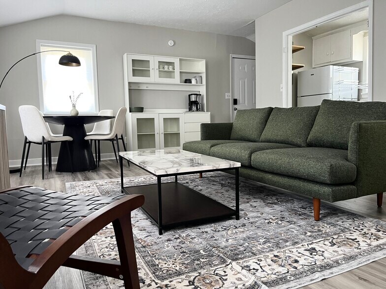 This FULLY FURNISHED 1-bedroom, 1-bathroom, upper floor unit of a duplex in the lovely Woolen Mills neighborhood offers 650 square feet of living space. The open living room/dining room features a large TV with streaming services, comfortable couch, and dining seating for 4. The galley kitchen is equipped with brand new appliances including oven/range, full-sized microwave and refrigerator, coffee maker, and water purifier. The bathroom includes a newly renovated tile tub/shower. There is a separate office/laundry room in addition to a bedroom featuring a comfy queen bed with high-quality linens and towels provided. All utilities including high-speed internet are included. Enjoy outdoor views from the balcony and access to a lawn area and easy street parking. Available for month-to-month leases.