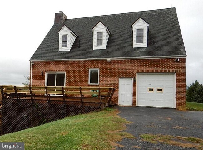 Welcome to your new home! This well-maintained all-brick Cape Cod is located conveniently between Purcellville and Lovettsville, just north of Route 9 and right off Berlin Tpke. Situated on a hill, pastoral views and mature vegetation surround the home, creating a relaxing green oasis. Upon entering, the generously sized rooms, high ceilings, hardwood floors, fresh paint and soft wood trim create a warm environment. The kitchen, with stainless steel appliances and granite counters, has ample gleaming wood cabinets to store all of your dishes and equipment out of sight. Imagine grilling out on your deck in the summer, or enjoying a warm drink in front of the fireplace to shake off the chill on winter evenings. The house features three bedrooms, all with their own full baths. Two of the bedrooms are on the upper level and one is on the main level. The main level also contains the kitchen, separate dining room with sliding glass doors to the deck and a living room with a corner gas fireplace. Room sizes are generous and places for storage are peppered throughout the house. Both floors are 9'+ in height. The Landlord pays the following: Electric service (for electric fixtures, heat, A/C, hot water, range, washer & dryer, microwave, refrigerator) water, sewer, and lawn maintenance. Tenant is responsible for obtaining and paying for Internet and TV service (Comcast is available), propane ( gas fireplace only), and trash removal. Flooring on the main level is hardwood, with tile in the kitchen. The upper level is carpeted and includes a large landing at the top of the steps. All bedrooms have built-in shelving. Closets are generous in size, each a walk-in of varying sizes. The Laundry room is on the main level. This rental is on a 6+acre lot with a separate main house. Tenants will have access to the lot for walking. Two ponds are part of the property. The Lower level of the house is a separate apartment, rented, but the entrance is not visible from the front or back entrances..