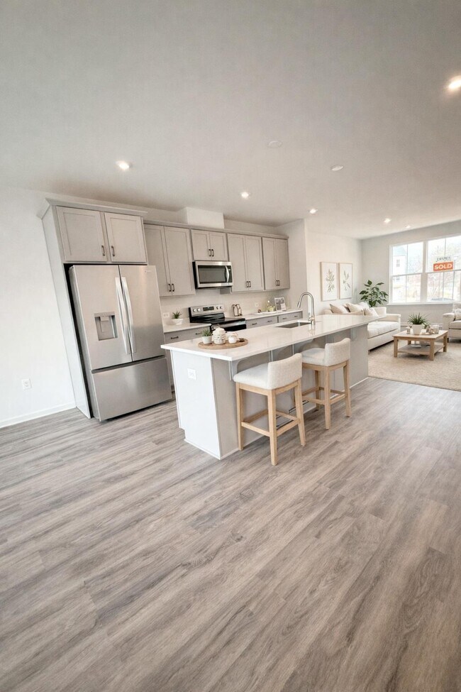 Available for occupancy following owner settlement, expected on or about 04/10/2026 Applications accepted now.*** Kings Landing in the heart of Manassas! This private enclave of 28 garage townhomes offers modern design and convenient living near Historic Old Town Manassas, with easy access to shopping, dining, and local attractions. Community amenities include paved walking trails, an open pavilion, and a dog station. The popular Highgrove model features a brick exterior and open floorplan with 3 finished levels, 9-foot ceilings, 4 bedrooms, and 3.5 baths. The entry level includes a flexible bedroom and full bath, perfect for a guest suite, home office, or study, with access to the 2-car garage. The main level offers open-concept living with a spacious family room, dining area, and a modern kitchen featuring stainless steel Whirlpool appliances, white shaker cabinets, quartz countertops, oversized island, walk-in pantry, and access to a private deck. Upstairs, the primary suite features a tray ceiling, walk-in closet, and spa-inspired bath with double vanity, shower with bench, and private water closet. Two additional bedrooms, a full hall bath with double sinks, and laundry complete the upper level. ***All pictures are AI generated staged ***
