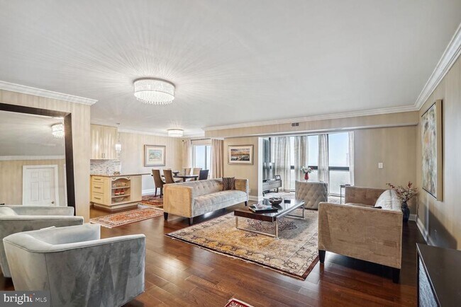 Offered fully furnished, all utilities , cable and internet included. . Minimum 6 month. Stunning, spacious, beautifully renovated 1 bedroom and den , 1 full and 1 half bath unit in the sought after Rotonda community. This 9th floor unit facing East has amazing views. Gleaming hardwood floors, gourmet kitchen with stainless steel appliances, quartz countertops, pantry, large updated bath, spacious walk-in closet, garage space . The Rotonda is a gated community with 24/7 security on 33 acres of manicured grounds offering country club-style amenities: a fitness trail, gardens with covered trellises, outdoor pool/spa, various sports courts, 4 tennis courts, putting green, play areas, gazebos, picnic areas, ponds with water features, fitness center, indoor pool/spa, yoga studio, media room, game room with bar, library, lounge, business center, general store, and more. Two unassigned outdoor parking spaces is included, one garage parking is included. Can be rented unfurnished for longer term lease, shorter term lease options possible. tenant is responsible to pay $600 move in fees to Rotonda management.