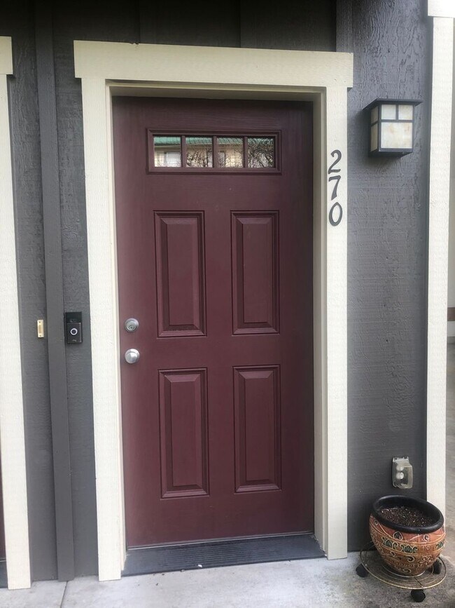 Sweet townhouse unit perched above greenbelt ravine in the heart of Winslow. Walk up from private entry to open living space surrounded by windows, galley kitchen, powder room, ample storage, and covered deck. Custom details, fir woodwork, loads of closets, carport parking space plus heated storage. Two bedrooms and full bath with laundry on second floor. A very special home in town. Unit number is 272.