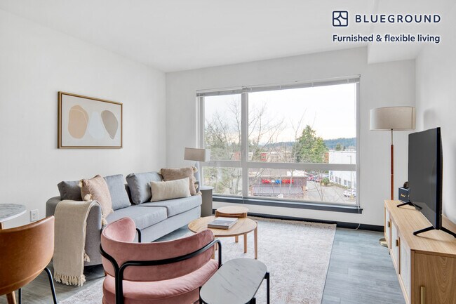 We offer custom pricing for any duration. Rates may vary upon exact move in and move out dates. The rate for this home starts at $2,080* / mo. Please visit our website and enter your dates of stay to see up-to-date pricing for your specific booking. *Price quoted is: (1) based on moving in the first day the unit becomes available, (2) applicable only if billed upfront; can be higher if billed in multiple payments, (3) exclusive of any taxes or utilities. Discover the best of Seattle, with this one-bedroom Bellevue apartment with views over the city. It’ll be easy to simply show up and start living in this contemporary Blueground furnished apartment with its fully-equipped kitchen, pretty living room, and our dedicated, on-the-ground support. (ID #SEA314) Designed with you in mind As with any Blueground apartment, you’ll find a thoughtfully designed space complete with beautiful furniture and a fully-equipped kitchen in this one-bedroom property. And, thanks to our superior quality mattresses, luxury linens, and towels, you can relax knowing you’ll always feel comfortably at home. When you’re ready for some fun, you can take in the Seattle vibes or bring the entertainment to you with the premium wireless speaker or smart TV. This apartment also offers in-apartment laundry. Sleeping arrangements Queen Bed, 63in/160cm Amenities Building amenities unique to this one-bedroom include an on-site: - Dryer - Elevator - Gym - Washing machine - Lounge - Parking - Pets allowed - Rooftop BBQ Arrival and ongoing support The entire apartment is yours to enjoy! You’ll either be personally greeted by a Blueground team member or given self check-in instructions. Throughout your stay, you’ll have access to our Client Experience team through the Blueground App. You can schedule additional cleanings, submit maintenance requests, and view our neighborhood recommendations with just a few taps. We’ll share all details upon confirmation of your stay. Ideally Located This furnished apartment is located in Bellevue, a bustling city separated from Seattle by Lake Washington. Downtown Park offers a large sprawling lawn, lush gardens and even a waterfall. The nearby art museum features interactive exhibitions and a sculpture garden. For even more nature, the Bellevue Botanical Gardens highlights plants of the Pacific Northwest. Numerous companies are located here such as Expedia, T-Mobile, and Postmates. Getting around from this area is simple as Bellevue is the Eastside sub for the local transit authority (King County Metro) as well as the regional transit system (Sound Transit). Other things to note Building amenities may have an extra cost. This Blueground apartment has flexible lease options, allowing you to book it for one month, a year, or more. Pets are welcome, though weight limits and breed restrictions apply and may incur fees. Parking is offered based on availability and is subject to a fee. We take great pride in ensuring every photo displayed is shot in our own apartments with our actual furnishings. That said, we regularly refresh our decor and furniture arrangement, which may differ from what’s pictured.