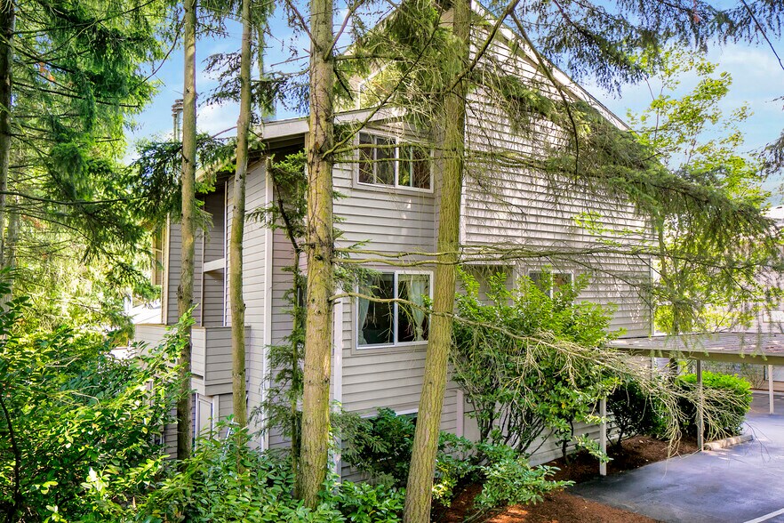 Updated, stylish, and unique townhouse-style condo in an unbeatable location! Located in the Woodridge neighborhood of Bellevue, this condo has been tastefully updated throughout. You'll love the open kitchen with incredible cabinet space and a beautiful quartz breakfast bar — perfect for morning coffee or entertaining guests. The spacious layout flows naturally between living and dining areas, giving the home an airy, welcoming feel that's rare in condo living. The showstopper? A dramatic 14-foot vaulted ceiling in the primary bedroom that makes the space feel like a true retreat. Newer bathrooms with clean, modern finishes, newer appliances, and thoughtful updates throughout mean you can move right in and start living. Additional storage and a private townhouse-style entry give you the feel of a home without the upkeep. Water, Sewer, and Garbage are all included, plus covered parking — so your monthly costs stay predictable. This home is located literally 90 seconds to I-90W, 3 minutes to Factoria Mall and T-Mobile. 5 min to Downtown Bellevue, 10 min to Seattle. Whether you're commuting, shopping, or exploring the city, you're perfectly positioned for all of it. Don't miss this one!