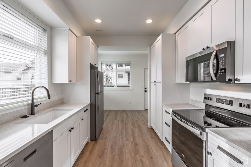ONE MONTH FREE RENT! Welcome to the new construction City Townhomes, a prime location in the heart of Bellingham, WA. This townhome offers a blend of modern luxury and comfort, with high vaulted ceilings and modern finishes that create a spacious and inviting atmosphere. The kitchen is a chef's dream, equipped with stainless-steel appliances and quartz countertops. The apartment also features air conditioning for those warm summer days and an in-unit washer and dryer for your convenience. The large walk-in closet provides ample storage space. Outside, you can enjoy the picnic area and walking paths, perfect for outdoor activities. These townhomes are just minutes away from the interstate, and nearby many local dining & shopping options. Experience the best of Bellingham living at 352 E. Bakerview Road.