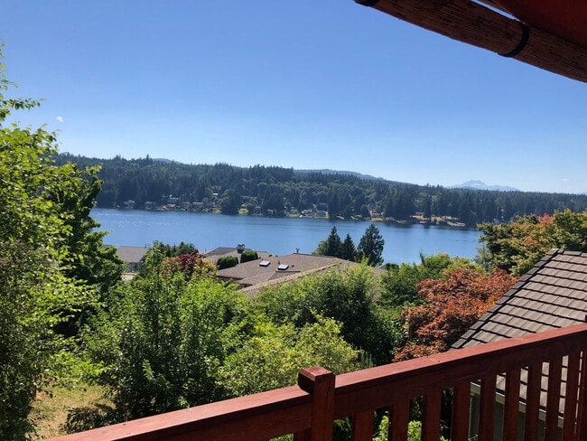 Bright and cozy home with lake views. Hardwood floors in the entire house. Spacious family room with gas fire place. Kitchen has granite counters and formal dining area. Covered deck. Vaulted ceilings throughout. One bedroom is converted to an office. The main bedroom is large and private from the rest of the house with a nice bathroom and walk-in closet. There is an extra room that was used as an artist's studio and sitting area. Washer/dryer. A/C. You'll love the neighborhood and the beautiful views of the Olympic Mountains and the Lake. Beautiful community beach park area for residents. No pets please. Available now.