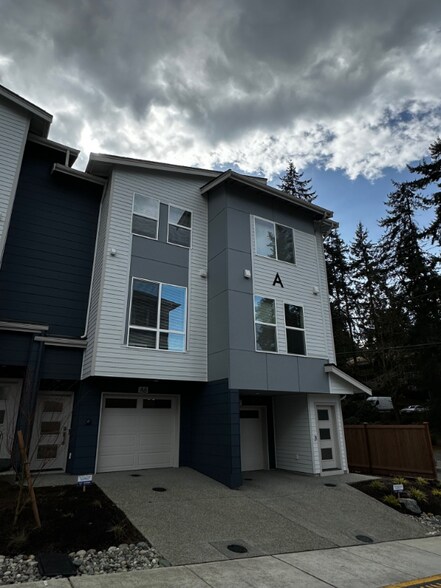 Open concept living area on main with gourmet kitchen, half bath and deck. Upper level has 2 bedrooms, 1.75 baths and laundry. Lower level has 2 car tandem garage w/storage and EV charging station. This unit shares a fenced yard perfect for a small garden. Surprisingly quiet and private, this home is situated near countless parks, restaurants and retail shops. Community play area on NW side of complex. Easy access to I5 (25 min. to downtown Seattle, Kirkland or Redmond) First & last months rent + security deposit. Utilities not included. No smoking. No pets. Min. credit score 680 with verified income ratio 3:1.