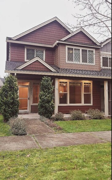 2 story townhouse END UNIT with large side yard. 3 bedrooms, 2 and half bathrooms. 2 over sized car garage. 9 ft ceilings, large loft area, covered porch, granite countertops, hardwood floors, stainless steel appliances, large 6 ft windows, spacious master bedroom with walk in closet, in suite master bathroom. NEW carpet and NEW hardwood floors. Has sprinkler system, open concept layout. Laundry room with washer and dryer on 2nd floor for convenience. Close to I-5, Marvin Ave Exit 111. 15-20 minutes to JBLM. Nice quiet/safe neighborhood.