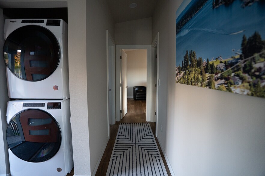 Close to I-5, snow skiing, and a view of beautiful Lake Stevens. 2 bed, 2 bath flat with laundry, parking on site as well as a covered deck, desk and office chair. New build. Clean and well taken care of.