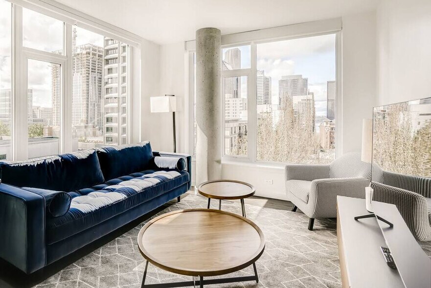 Experience the charm of Seattle in this bright open-plan two-bedroom apartment located in the vibrant First Hill neighborhood. With floor-to-ceiling windows offering sweeping city views, this apartment is designed to make you feel at home. The kitchen boasts stainless steel appliances and quartz countertops, while modern technology like keyless entry, motorized shades, and a Nest thermostat simplify daily life. Enjoy access to a rooftop lounge with skyline views, an entertainment lounge with a billiards table, a fitness center, co-working spaces with high-speed Wi-Fi, BBQ grills and firepits, a dog run, work lounge, bike storage, demonstration kitchen and bar, photo booth, coffee bar, and bookable conference rooms. The apartment is thoughtfully designed to ensure comfort and convenience during your stay. First Hill is a welcoming residential neighborhood near Seattle’s best restaurants, shops, and nightlife. With Seattle University within walking distance and the streetcar providing easy access to downtown, you can explore the city effortlessly. The neighborhood offers stunning views from the skyline to the Puget Sound, making it an ideal place to live and explore. The apartment is designed with your comfort in mind, but layout and furnishings may vary by unit. Enhanced cleaning and disinfecting procedures are in place based on CDC guidelines, including increased cleaning of high-traffic areas and the use of hospital-grade disinfectants. Hand sanitizers and disinfectant wipes are available in common areas. All guests will be screened beforehand to ensure the best experience, and a lease must be signed after confirming online. [SI]