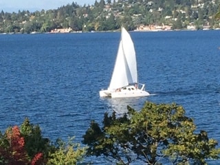 Escape to this beautiful modern Seattle apt., with stunning views of Lake Washington and Mercer Island from every room.