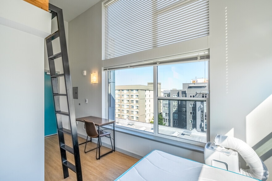 Nestled just steps from the dynamic Capitol Hill neighborhood, Kulle Urban Living offers a modern and comfortable residential experience in the heart of Seattle. Our thoughtfully designed micro-apartments feature sleek hardwood-style flooring, expansive windows that bring in natural light, and stainless steel appliances, including a refrigerator and microwave for added convenience.