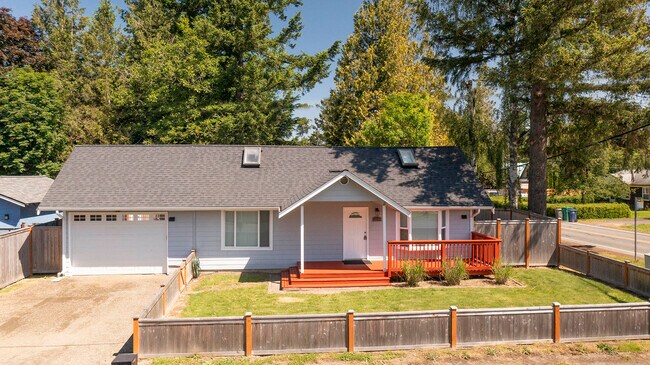 Situated off downtown Snoqualmie, this 2-bedroom 2 bath + loft single family home has vaulted wood beamed ceilings & open spaces! The Great Room has a corner gas fireplace and opens to the Kitchen with eating bar. Galley Kitchen has top of the line stainless appliances, including gas stove/range! Stainless steel farm sink, granite tile counters & beautiful wood cabinetry, plus pantry! Step off the Kitchen to an expansive deck and fully fenced backyard with storage shed! Large Primary Bedroom with attached bath & tiled walk-in shower. Second bedroom with access to full bath in hallway. Upstairs you will find a loft perfect for that extra flex space you need for office, extra bedroom, media room! Large front deck and 1 car garage open to the back perfect for storing RVs/boats! Welcome home to your lovely Snoqualmie retreat with amazing mountain views! All applicants 18+ please apply at www. ; $45 per application. Pets case by case with additional deposit. More details @