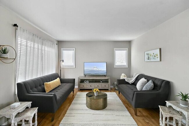 Walk to Point Ruston from this beautiful bungalow, complete with a white picket fence, in desirable North Tacoma. This home features gleaming oak floors, air conditioning, a fully fenced yard, and comfortable living spaces. It is close to Point Defiance Park and Ruston Way waterfront, parks, shopping, restaurants, and entertainment, making it an ideal location for your stay. Escape to this bright and cozy 1950s bungalow in the heart of North Tacoma, complete with a private yard and all the comforts of home. Whether you're here for work, transition, or just a change of scenery, this beautifully updated space is ideal for longer stays and peaceful living. The main bedroom offers a brand-new plush king bed with generous storage and calming vibes, while the second bedroom features a cozy queen bed with premium linens. The spacious living area boasts gleaming restored oak floors, original built-ins, and abundant natural light throughout. Enjoy meals in the dedicated dining space with a table for four indoors and French doors leading to your private backyard patio with additional outdoor dining. The modern, fully equipped kitchen is perfect for whipping up your favorite meals, featuring stainless steel appliances, quartz countertops, and all the cookware and essentials you need. Pet stays are allowed with pre-approval and a $50 cleaning fee per animal. The private, fenced backyard is perfect for letting your well-behaved pets roam. Live in the center of it all, just a few blocks from Ruston Way Waterfront, a 2-minute drive or quick walk away. Explore Point Defiance Park and Zoo, the Proctor District, Stadium District, and UPS, all within easy reach. You'll find restaurants, grocery stores, coffee shops, and markets nearby, and it's only 10 minutes to Downtown Tacoma or the 6th Ave District. The home is all yours while you stay, with a private, fenced backyard allowing you to bring your furry family along. A maximum of two pets are allowed per stay with approval on a case-by-case basis, and a $50 pet fee per animal is required for additional allergen and sanitation cleaning. Enjoy contact-free check-in and 24/7 virtual support to limit in-person interaction. The property is professionally cleaned following the guidance of the CDC and the World Health Organization, ensuring high cleaning standards. The home offers blazing fast WiFi and ample workspace, making it remote work-friendly. Enjoy digital self-check-in and on-call local support whenever you need it. Utilities are always included, even for longer stays, and you'll have access to a washer and dryer. [SI]