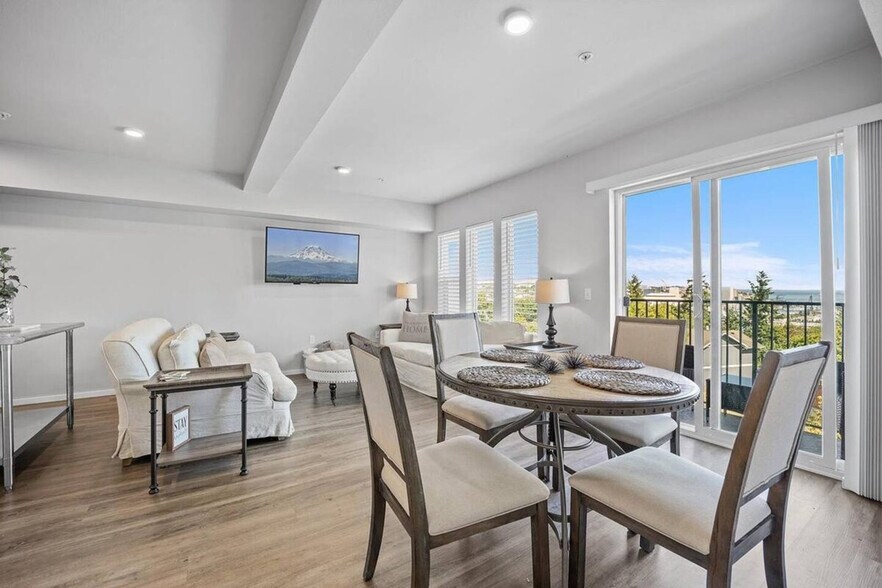 The advertised rate of $5,928/month is the lowest available price, based on a 30 day(s) stay with a move-in date of May 8, 2026. Rates vary depending on the duration of stay, season, and other parameters. For exact pricing and additional pricing components, please visit our website and enter your desired move-in and move-out dates. The rate is applicable when billed upfront; it can be higher if billed in multiple payments. Welcome to this prime Tacoma Dome apartment, perfectly situated in the city center with breathtaking views of Commencement Bay. Located just minutes from the waterfront, Tacoma Dome, and the University of Washington, this home offers modern furnishings and a fully equipped kitchen. Enjoy the convenience of included parking in this controlled access building with keyless entry. Nestled on a quiet street in the Tacoma Dome neighborhood, this condo boasts a spacious and open floor plan with two private bedrooms and 1.5 baths, accommodating up to four people. Each bedroom features plush down bedding with queen-sized beds, spacious closets, and tasteful decor. The kitchen is a chef's delight with sparkling white granite countertops, stainless steel appliances, and all the cookware and coffee essentials you need. The bathroom is well-stocked with towels, shampoo, conditioner, and basic toiletries. Additionally, the condo includes a washer and dryer with laundry detergent, dryer sheets, and an iron/ironing board for your convenience. Relax in the living area on Pottery Barn and Restoration Hardware down feather-filled sofas, enjoy Netflix, or dine at the table for four. Reserved parking is included, ensuring you have a hassle-free experience during your stay. This apartment is ideally located in the Tacoma Dome neighborhood, offering easy access to the waterfront, Tacoma Dome, and the University of Washington. Enjoy the vibrant city life with the DT Tacoma city skyline as your backdrop. The building offers controlled access with a keyless lobby and condo door, making entry a breeze. [SI]