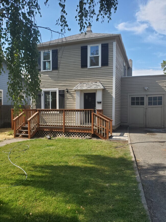 Check out the vintage charm of this turn of the century home! Can you imagine how beautiful a Christmas tree will look in this home? Main floor has a beautiful living room, adjoining to a dining room, kitchen, den, office, or playroom off the kitchen on one side and a huge laundry room on the other side with lots of room for storage. The basement houses the hot water tank and furnace, along with more storage! There are 3 bedrooms upstairs, also built-in cupboards. The fenced yard is huge! The garage is attached to the house. Tenant is maintains yard , both watering and mowing lawn.