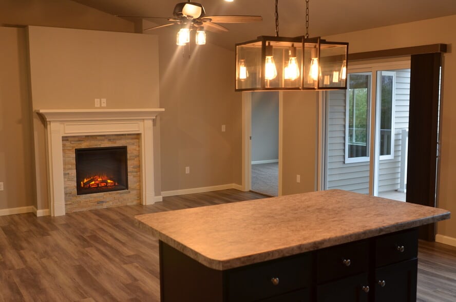 Newer 2 bedroom, 2 bathroom luxury apartments with a 1 car attached garage that is conveniently located close to Highway 441. Maintenance-free living (we handle all snow removal and all lawn care) with easy access to downtown Appleton and is just minutes away from several large employers. Contemporary living complete with a stone façade and decorative features inside and out. Exclusive, private setting on a wooded lot with mature trees. Indoor/outdoor living with landscaped grounds and easy access through sliding door to large outdoor patios. Private entrances for each of the 8 units, lighting and attached 1 or 2 car garage ensure your safety and security. Spacious storage with coat closet by entrance. Generous storage throughout, with large walk-in master closets. Each master features an en-suite master bath. Bedrooms have neutral carpet and all units have bathtub. Bright and beautiful kitchen features eat-at island, Shaker-style cabinets, subway tile back-splash, can lighting, and contemporary light fixtures. Energy-efficient stainless-steel appliances include range, refrigerator, dishwasher and microwave. Kitchen boasts abundant storage with a pantry. Stainless steel sink, garbage disposal, and higher-end faucets round out the special touches. Upscale decorating includes modern light fixtures and matching ceiling fans, bright and airy painted woodwork, durable laminate flooring that mimic the look of hardwood. Electric fireplaces with stone surround enhance cold-weather living. Each unit offers a utility room with individual washer and dryer; is cable and internet ready; has central air. Gas is included with individual climate control in each unit. Smoke-free living; no pets allowed. Maintenance Free - no snow removal and lawn care by tenants. Local owners with good accessibility.