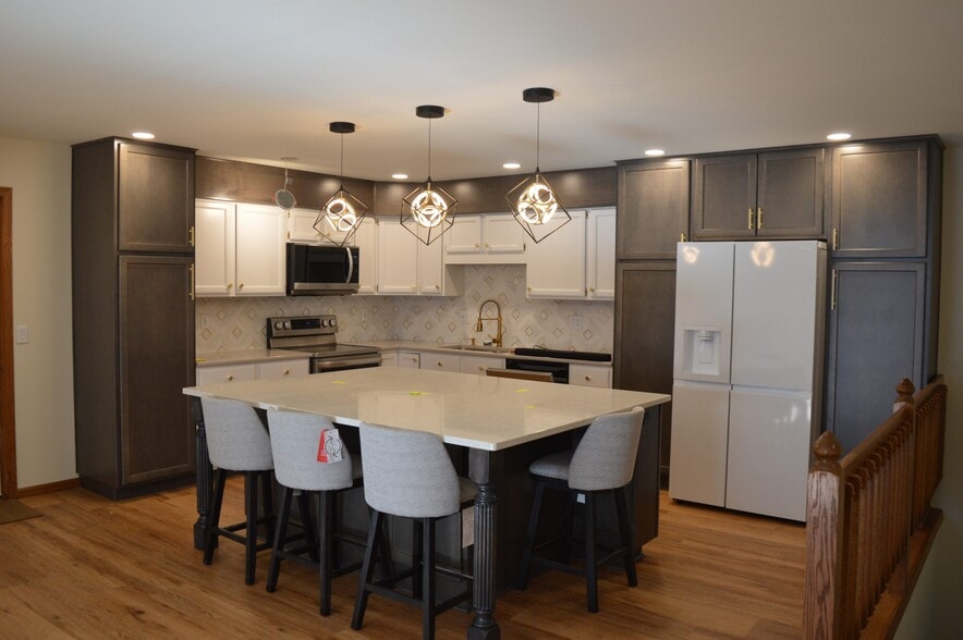 Rent this beautiful Fitchburg duplex, located near Fish Hatchery Road with quick access into the city. This duplex has been remodeled and features a beautiful, high end kitchen with an oversized island, quartz countertops and stainless steel appliances. The kitchen overlooks the living room. Two bedrooms and a full bath are also on this level. The finished lower level has a spacious family room with a walkout to the back patio. There is also the third bedroom, a second full bath and additional storage space with laundry facilities. Outside, this duplex has a 2 car garage, a back patio and nice backyard. 2 Car Garage 2 Living Spaces Back Patio Breakfast Bar Central Air Finished Lower Level High End Kitchen Kitchen Island Main Level Bedroom Private Entrance Professionally Managed Quartz Kitchen Countertops Walkout Lower Level Washer and Dryer