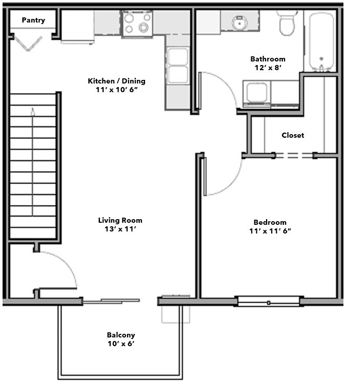 1 bed, 1 bath, 648 Sq Ft, Not Available