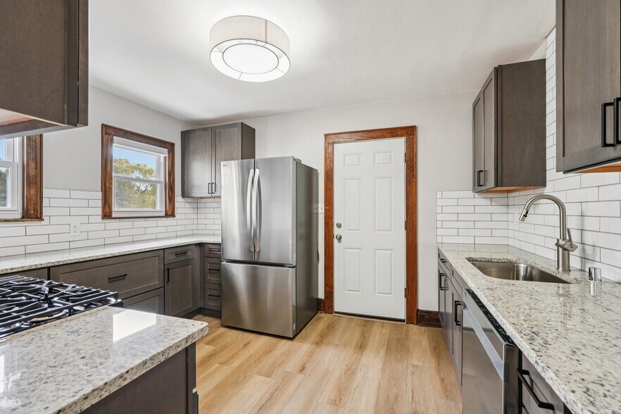 Beautifully renovated 2-bedroom upper unit featuring luxury vinyl plank flooring in the kitchen & bath. Natural wood flooring throughout the rest of the home. A cook’s dream kitchen with granite countertops provides ample prep space and abundant storage, complemented by brand-new stainless steel appliances, including a gas stove, refrigerator, dishwasher, and stylish hood vent above the stove that vents outside. A stylish subway tile backsplash adds the perfect finishing touch. Walk-in pantry for additional storage. Energy-efficient honeycomb light-filtering blinds enhance comfort throughout, with room-darkening blinds in the bedrooms. Energy efficient, new windows. Additional amenities include central air, driveway space, and a fully fenced yard. Conveniently located just a few blocks from Bayshore Town Center in Glendale, with easy access to I-43. This is a smoke free property (both inside and outside). A small dog ( breed restricted), but no cats. Water/Sewer/Trash is paid by owner. Owner has professional lawn service to weed treat and mow the lawn weekly from May thru October at owners expense. Snow removal is equally shared by tenants in the building.