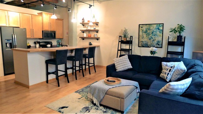 946 square feet, 1 Bedroom, 1 Bathroom | 3rd Ward Loft, unfurnished 1 Parking space Included: Heated, Secure Parking detached garage parking Exposed Brick Walls, Wooden Beam Ceilings, Updated Lighting Stainless Appliances, In-Unit Washer & Dryer w/ Laundry Room Sliding Barn Door, Updated Closet Space for Two Prime Location on Broadway, 3 Minute Walk to Public Market, Riverfront Walk, and Excellent Restaurants Central Heat and Air Conditioning No Pets, No Smoking Flexible Start Date