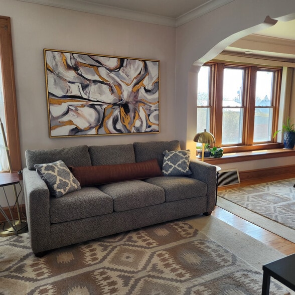 Bright and beautiful south facing apartment available for your month-to-month lease! Furnished and all ready to go with utiliites included. This is a one bedroom (sleeps 2 ), one bathroom with office/dressing room. Two smart tvs with Wifi, just sign in your favorite apps. There is off-street parking in the alley, shared back yard space, private front porch. Washer/dryer is on-site. $500 security deposit. Dogs are considered after an interview with the owner.