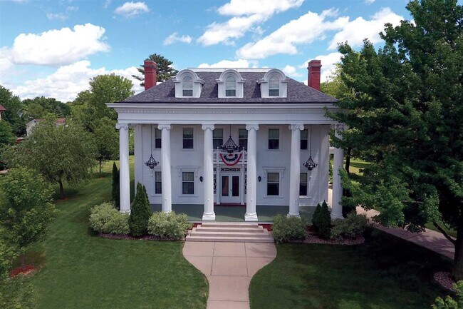 The White House in Wisconsin Rapids is the area's largest historic mansion. Six white wooden pillars stretch for two stories in front of a 115-year-old white manor along the river in Wisconsin Rapids. The distinct opportunity to lease this piece of history is Now available. Rooms include a historic library, a front parlor room, billiards room, grand foyer, an elegant dining room and five spacious bedrooms, some with fireplaces, 3 full, 3 half baths. Detached 2 car garage included with lease agreement. Stay in the house that hosted Louis Armstrong, Susan B. Anthony, Mickey Rooney and more. Each of the bedrooms have smart TVs and are appointed with fine linens and historical decor.